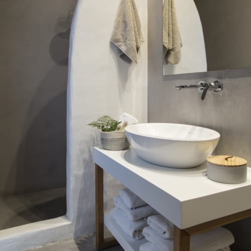 Επίσης στο ισόγειο, αυτά τα φιλόξενα και ευρύχωρα δωμάτια διαθέτουν αίθριο για με άμεση θέα και πρόσβαση στο ήρεμο περιβάλλον της πισίνας. Χαλαρώστε με άνεση σε ένα διπλό κρεβάτι queen size και έναν καναπέ-κρεβάτι, μπάνιο με ενσωματωμένο ντους ψιλής βροχής, μίνι ψυγείο και smart τηλεόραση επίπεδης οθόνης. Ιδανικά για δύο ή τρεις ενήλικες, τα Superior δίκλινα δωμάτια είναι σχεδιασμένα τόσο με στυλ όσο και για άνεση, με φυσικά υλικά και απαλούς τόνους που αντικατοπτρίζουν την κυκλαδίτικη αρχιτεκτονική του νησιού.